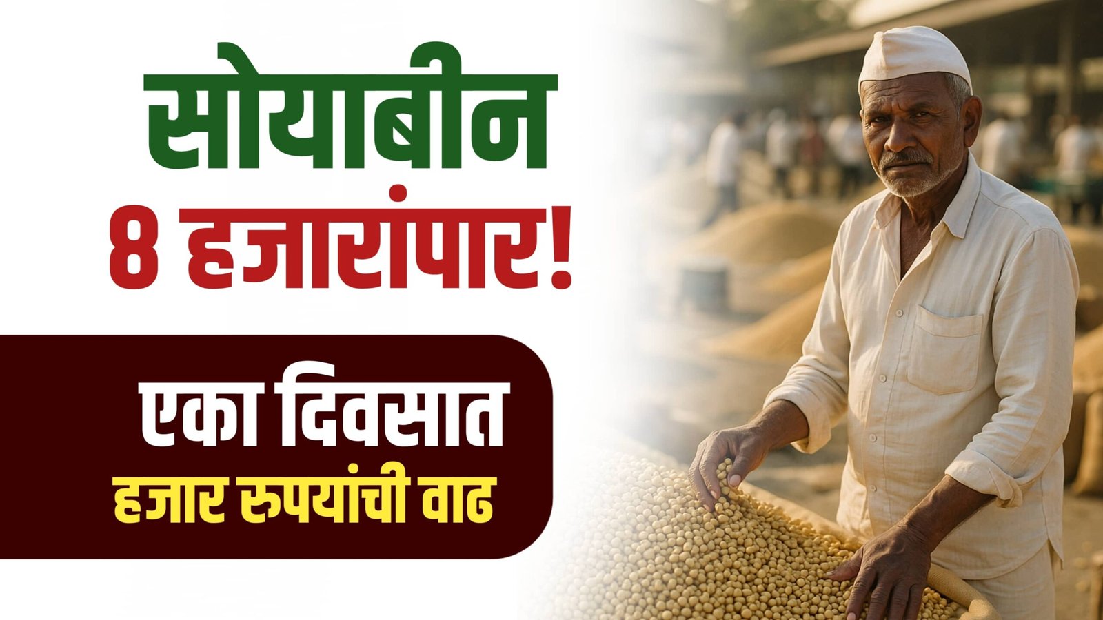 सोयाबीन 8 हजारांपार! एका दिवसात हजार रुपयांची वाढ, पहा ताजे भाव..!